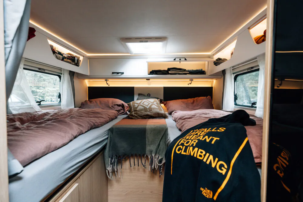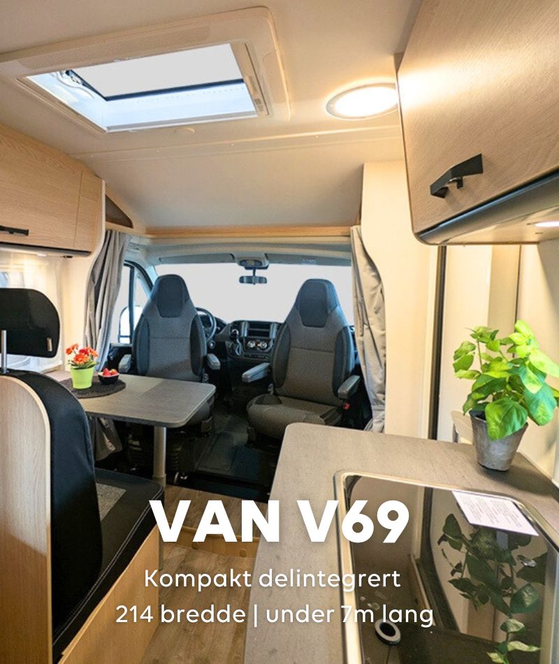 For de som har mye utstyr å oppbevare, men likevel ønsker å være så smidige og fleksible som mulig: V67S. Dette er smale, manøvrerbare bobiler – som kaller VANS – tilbyr god plass både i bodelen og i den separate bakgarasjen. Dette er den første bybobilen med en permanent tredje soveplass – rask å sette opp, lys og romslig.
